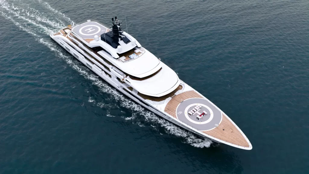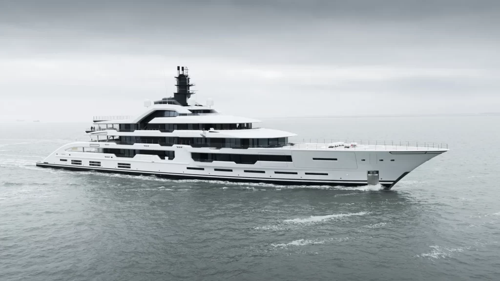 Launched in September 2025, Project Tanzanite began construction in 2020 and represents a milestone for the Dutch shipbuilder. First glimpsed in 2023 during her transport from Damen Shipyards Galati in Romania to the Vlissingen facility, the yacht now dominates the Amels fleet both in size and engineering ambition.