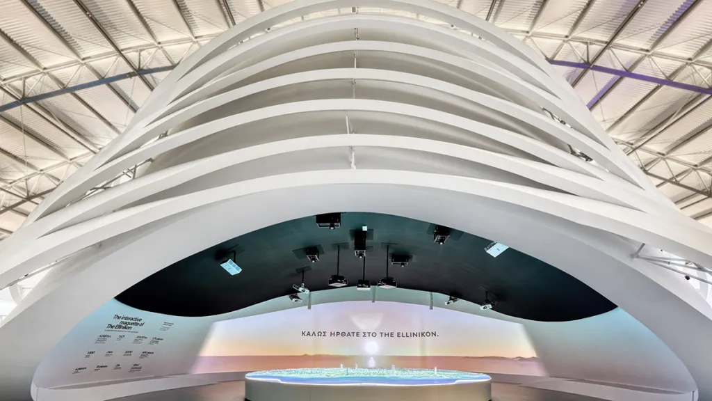 Visitors can already preview the vision at the Ellinikon Experience Center, housed in a former airport hangar and showcasing the future city through immersive digital exhibitions.