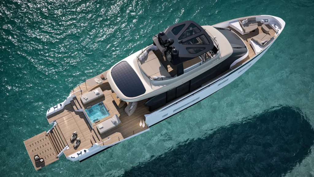 The Seadeck 9 serves as the flagship model of Azimut’s hybrid-focused Seadeck series. The shipyard first unveiled the model at the 2023 Cannes Yachting Festival.