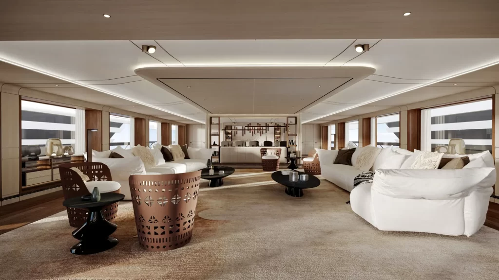 The yacht’s design team is entirely Italian, with Antonio Luxardo overseeing the exterior lines and Pulina Exclusive Interiors creating the refined interior atmosphere. The result is a vessel that harmonizes adventure and sophistication, blending luxury with functionality.