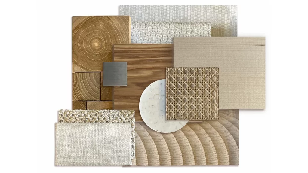 - Wooden flooring with 3D wave patterns mimicking sand underfoot