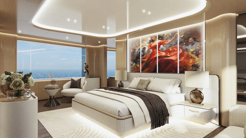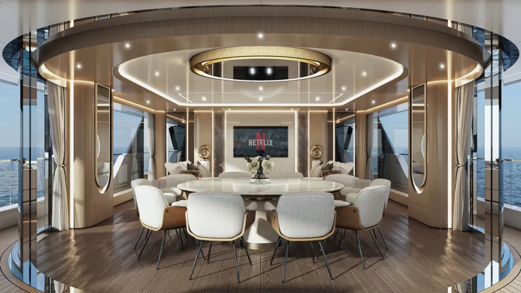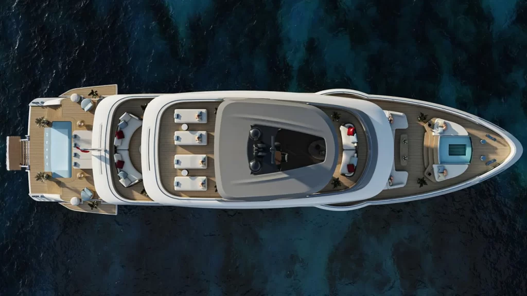 Italian designer Gabriele Teruzzi developed both the exterior and interior design in collaboration with the shipyard. The concept reflects a new approach aimed at owners who want a high level of customisation within a well-structured build platform.