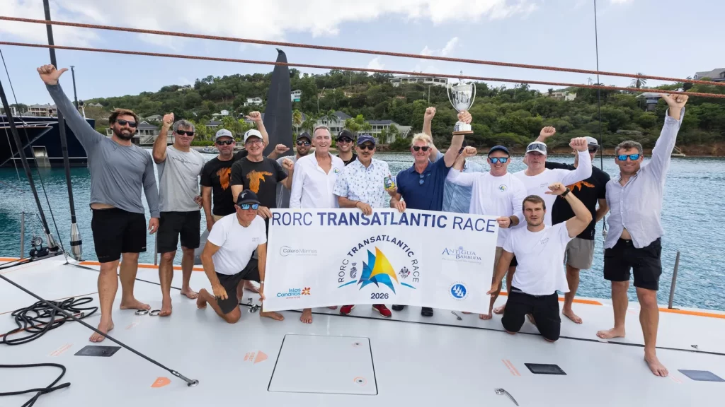 The 33.8-metre Baltic 111 sailing yacht Raven has claimed Monohull Line Honours and set a new race record in the 2026 RORC Transatlantic Race, crossing the 3,000-nautical-mile route from Lanzarote to Antigua in 6 days, 22 hours, 27 minutes, and 47 seconds.
