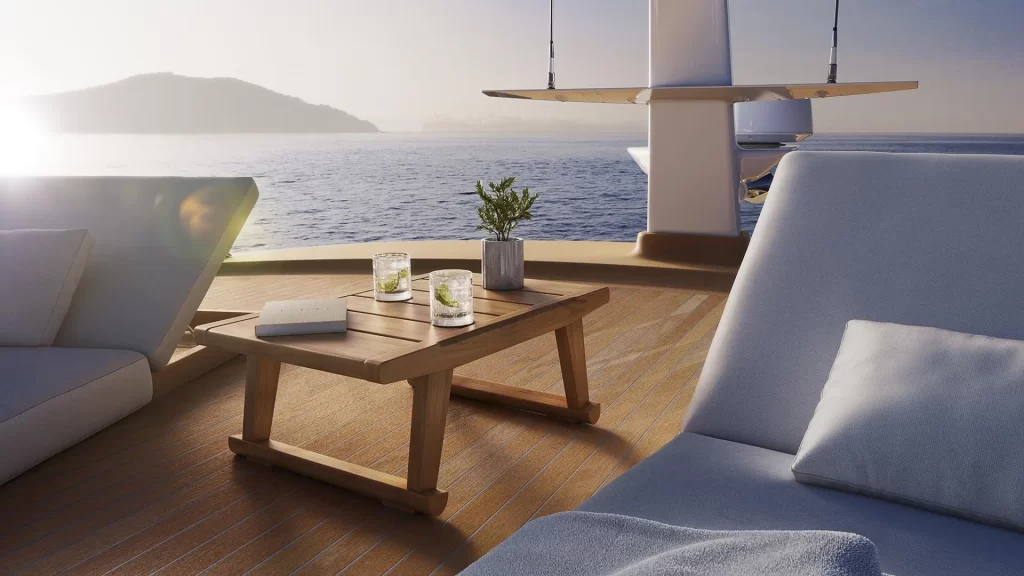With minimalist lines inspired by the 1960s, SHE’s exterior flows with elegance and intelligence. Her spaces are adaptable and open, offering a dynamic onboard experience without compromising style. Full-height glazing and a versatile Smart Island system create a seamless dialogue between interior and exterior.